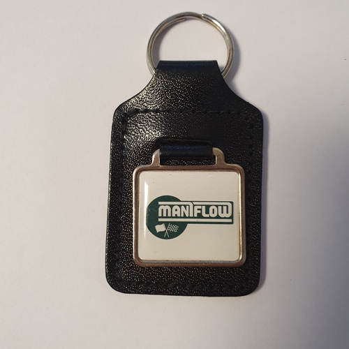 Leather keyring fob with Maniflow logo.